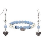 Schmuckset Armband und Ohrringe aus Angelit Bergkristall mit Herz